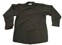 Button down in front. One front pocket on the left front. Long sleeve with a cuff.