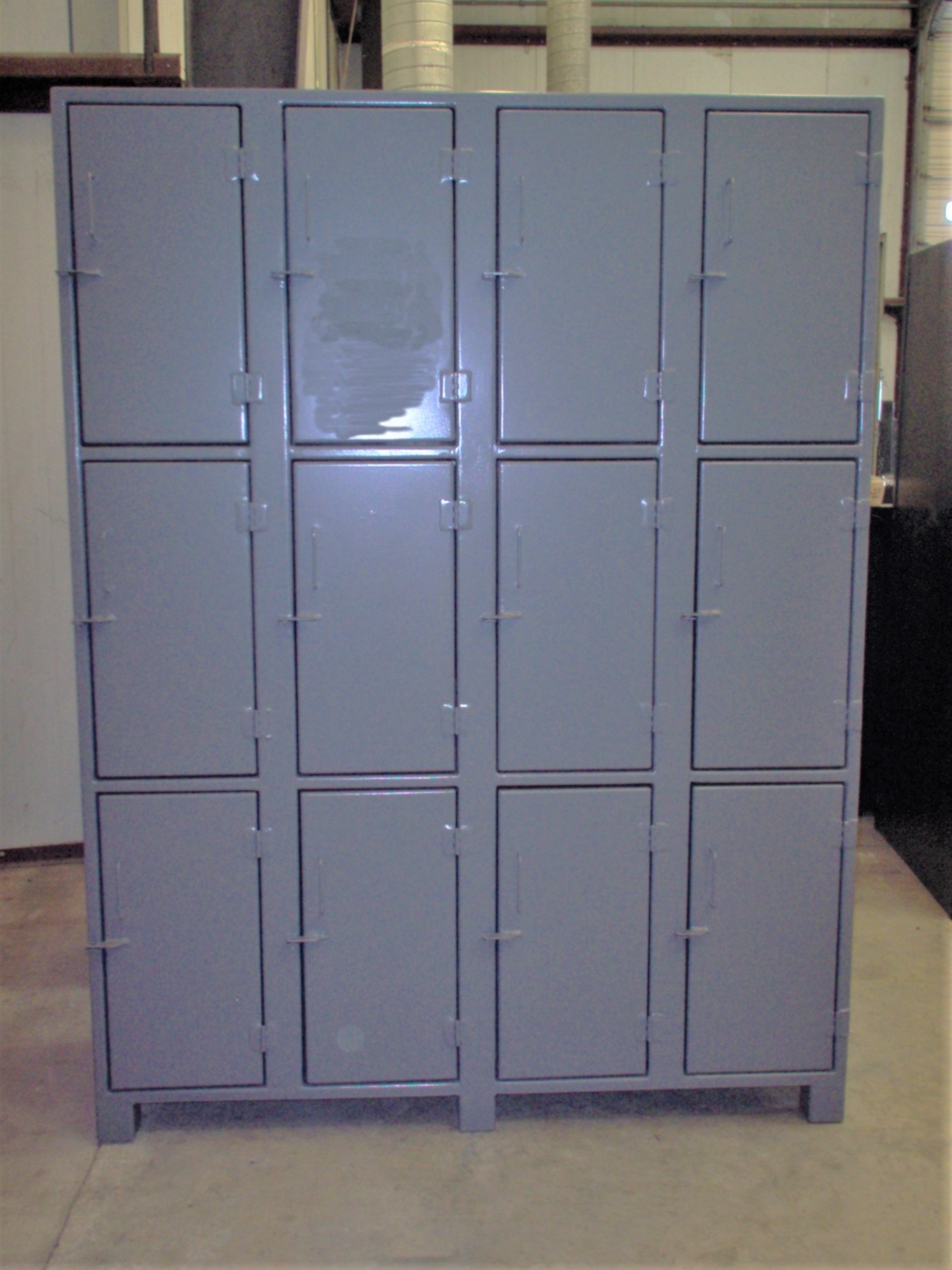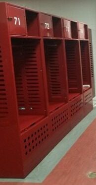 Metal Lockers may vary in size, shape and color. Used for storing sports equipment or other personal items.
