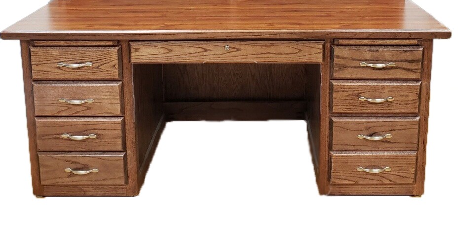 Executive Desk full skirt. Top size 36″ x 72″. Stain colors and hardware can vary. Desks are designed with a locking lap drawer. Additional locks can be requested for an additional fee of $5.00 per lock.