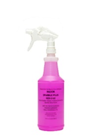 Razor’s Sparkle Plus is safe not only on glass, mirrors and chrome, it is also safe for Plexiglas. It contains no ammonia or abrasives.