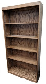 Bookcase, 36″-96″ high x 36″ wide x 12 1/2″ deep, with two adjustable shelves. Selecting a different height will up-charge your merchandise. Click the size dropdown arrow for more sizes and pricing. Laminate top. Stain colors can vary.