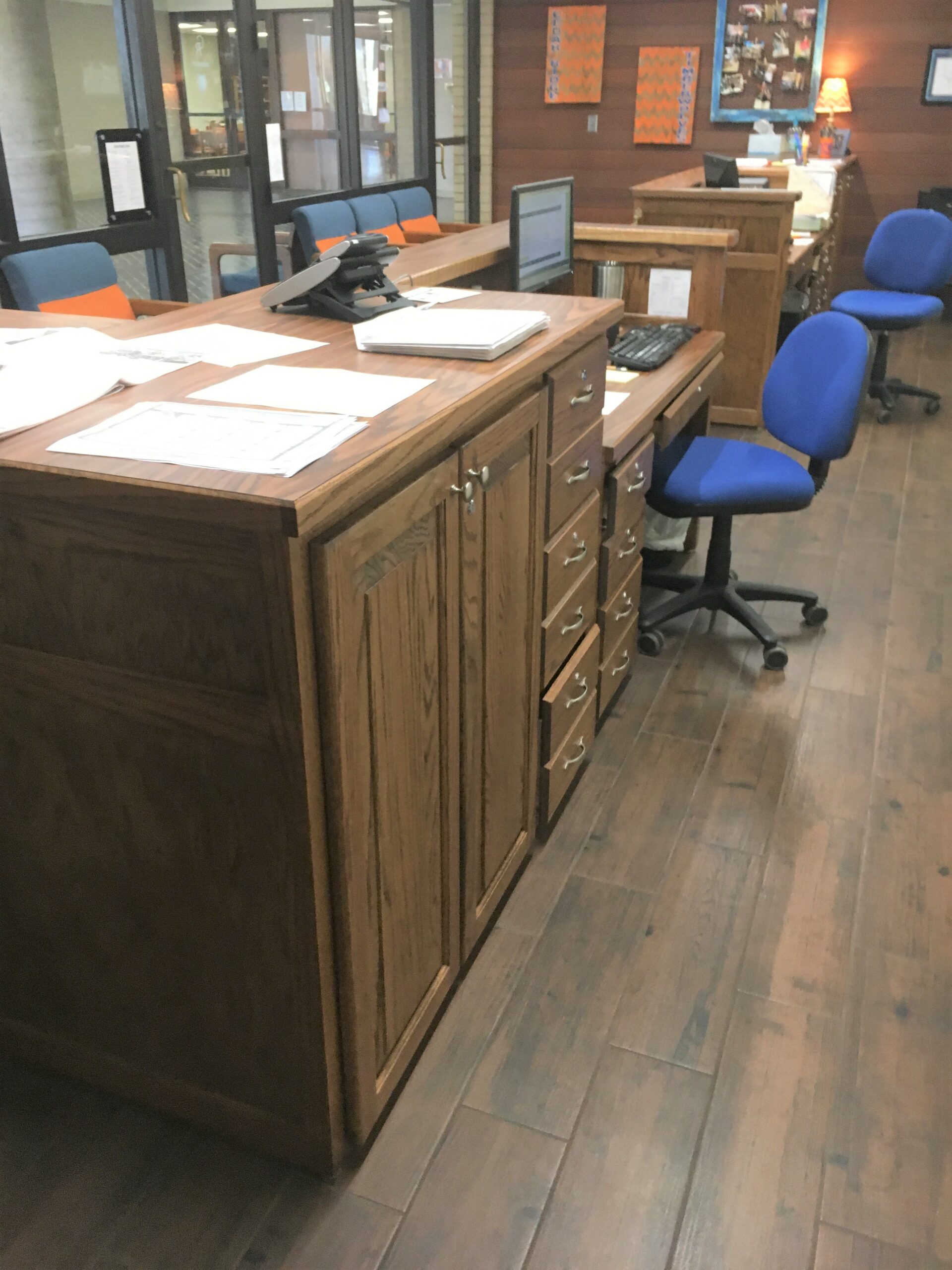 Workstations and Circulating Desks are designed to fit your space. We will measure, draft and install all pieces.