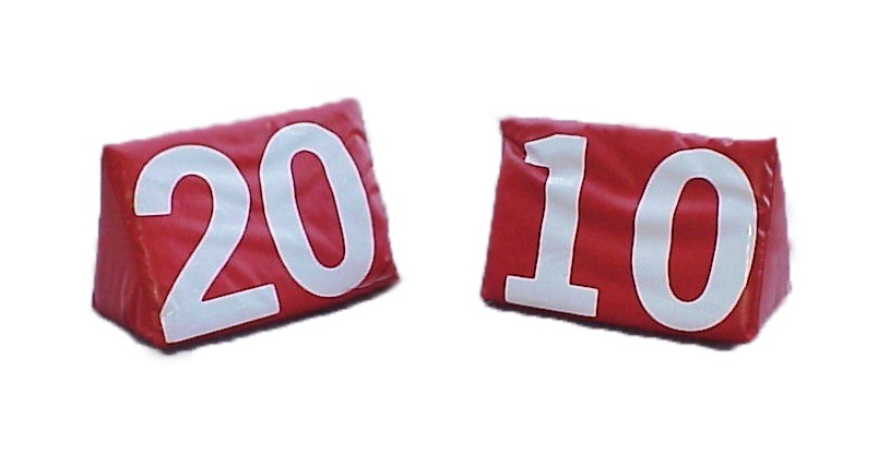 Set of markers 18″ long x 12″ high x 9″ width triangular-shaped foam with vinyl coated covering, weighted bottom. Red, Orange and Yellow padding VCC will be a UV material, and have an upcharge.